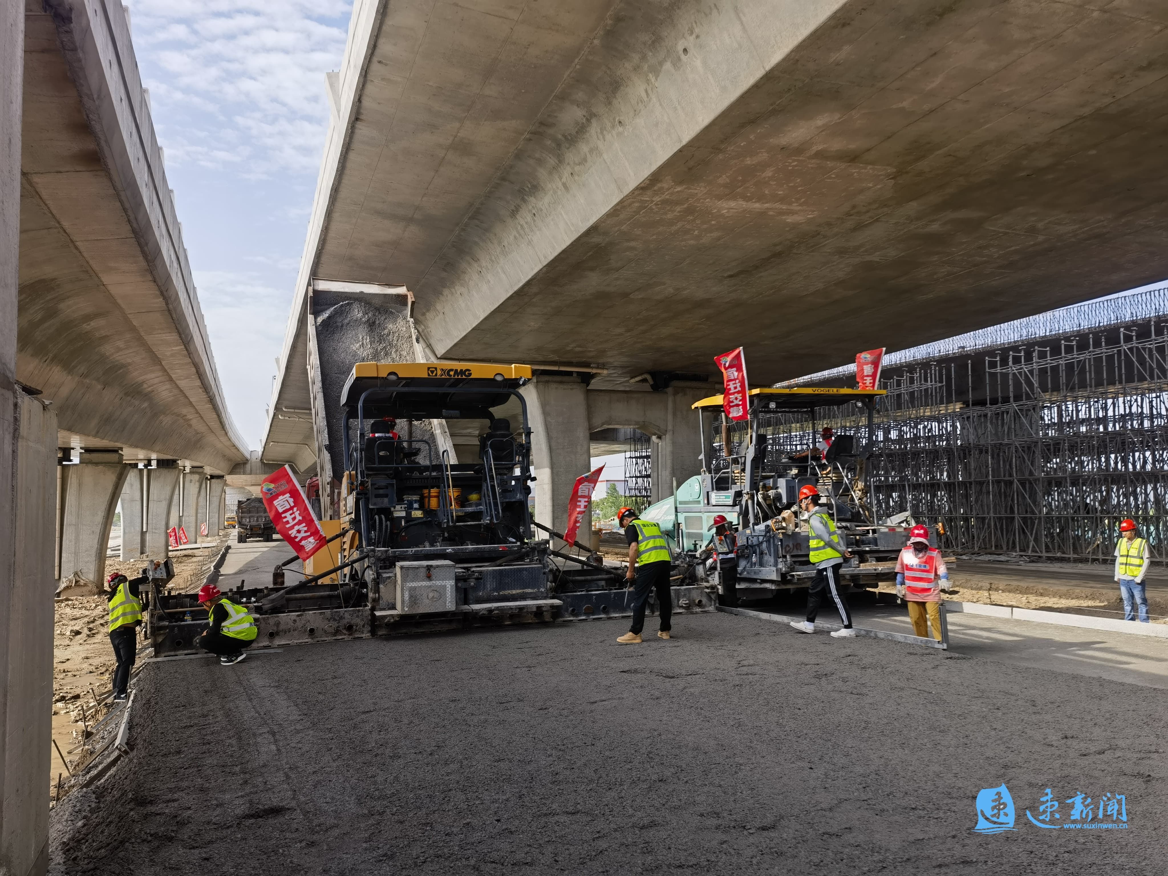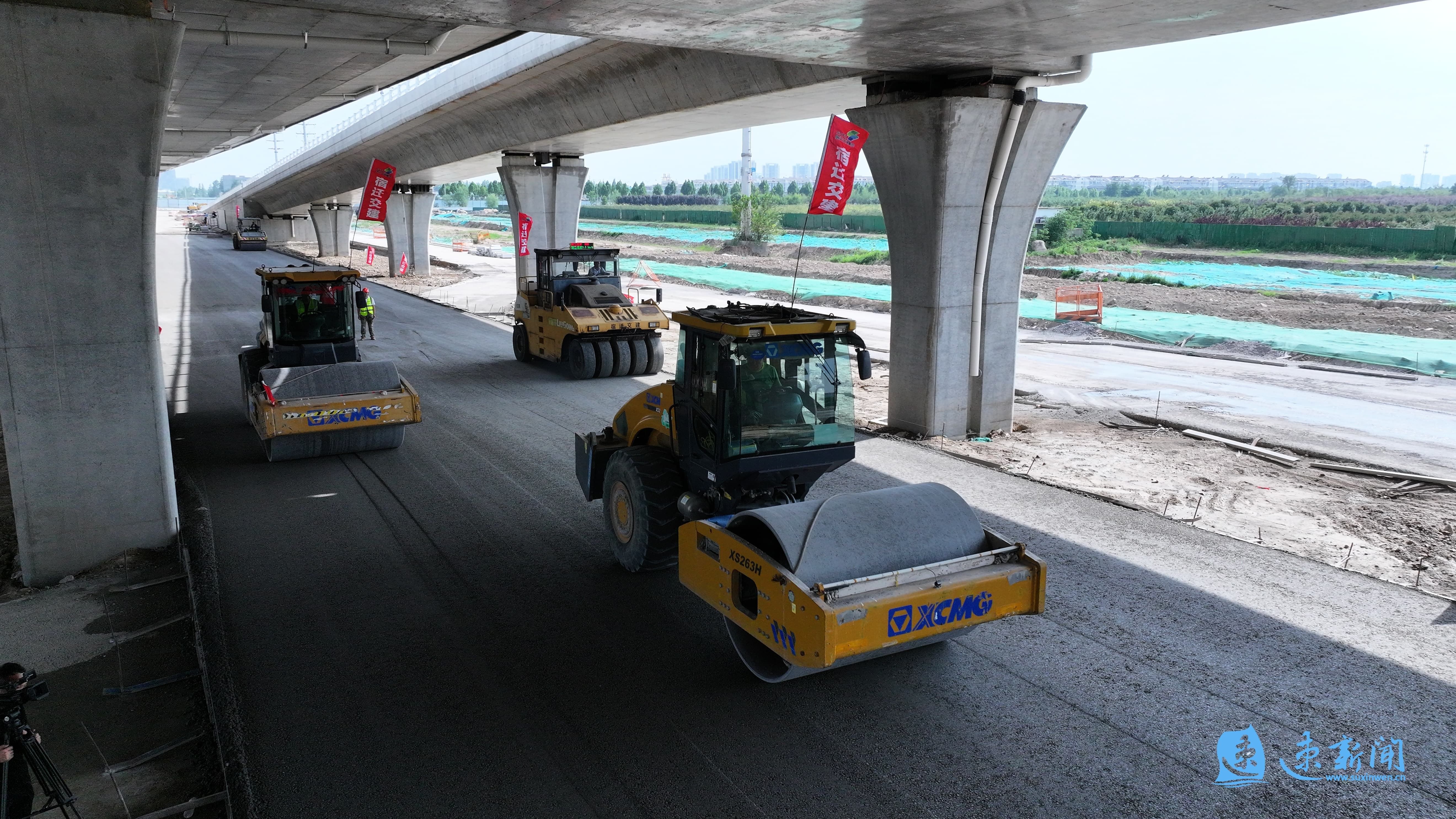 高空俯瞰建设中的酒都路快速化改造工程,这条南北走向的交通动脉已全线贯通,宛如一条绵延的钢铁巨龙,气势恢宏。桥下施工区域,两台摊铺机正匀速摊铺水稳层,压路机紧随其后来回碾压,现场机械轰鸣,一派繁忙有序的施工景象。截止目前,完成投资21.09亿元,占项目总投资的92%,预计年底建成通车。