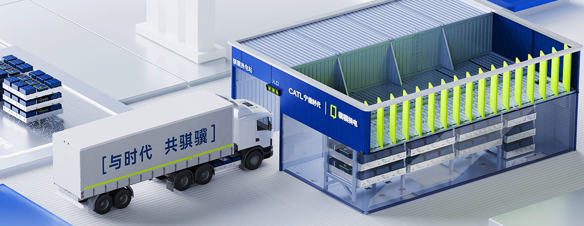 重型卡车作为公路货运的主力军,其绿色转型对实现“双碳”目标至关重要。通湖物流园敏锐把握市场需求与政策导向,经过充分调研与深入洽谈,成功携手宁德时代规划建设宁德时代骐骥换电站项目。项目位于宿迁经济技术开发区通湖物流园停车场内,总面积2000平方米,规划建设8个标准换电仓位,采用先进的底盘式换电技术,单次换电时间仅需5分钟,服务能力达到192次/天。