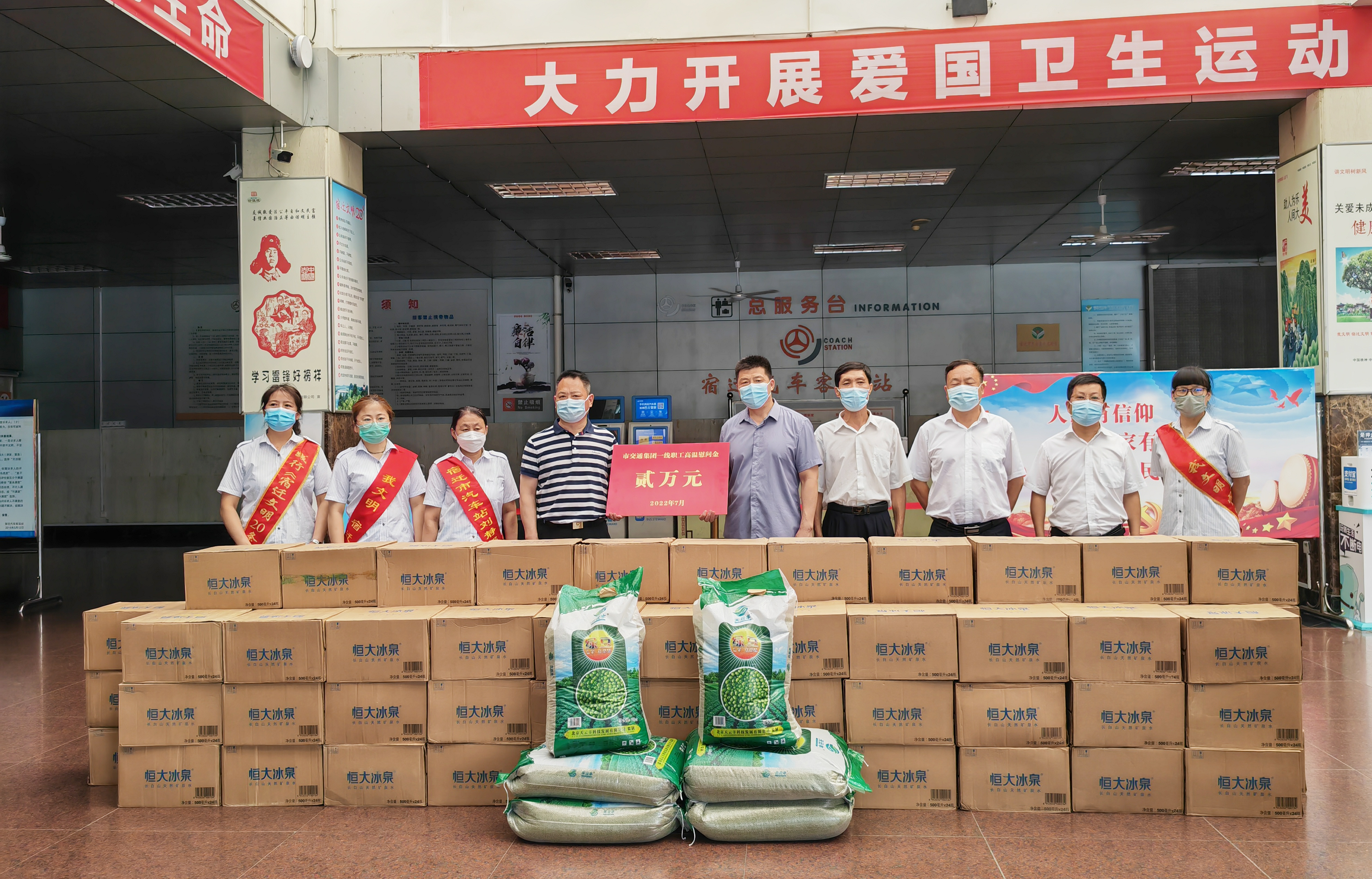 集团副总经理汪卫东一行走访宿迁汽车客运站,向一线人员发送“清凉大礼包”,并详细询问近期疫情防控、安全生产和旅客出行等工作开展情况,叮嘱宿汽集团要维护职工健康、扎牢疫情防控、确保安全生产,实现员工和企业共同健康发展的双赢局面。