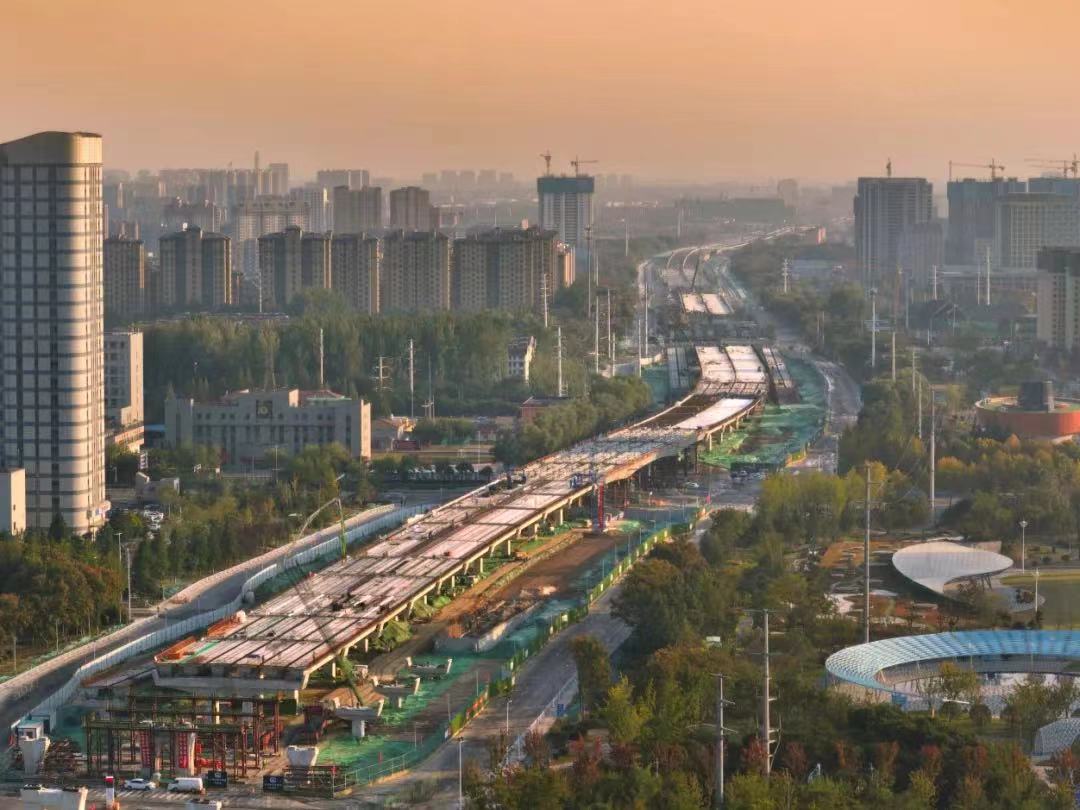 北京路快速化改造工程累计完成预制板梁架设100%、防撞护栏99.7%、桥面铺装100%、伸缩缝45.3%、路基填方99.7%、雨污水管道99.7%、水稳摊铺95.2%、沥青摊铺56.6%、路缘石90.9%、人行道铺装84.6%、标牌安装40.6%、路灯46.6%、乔灌木24.6%、地被12.7%。