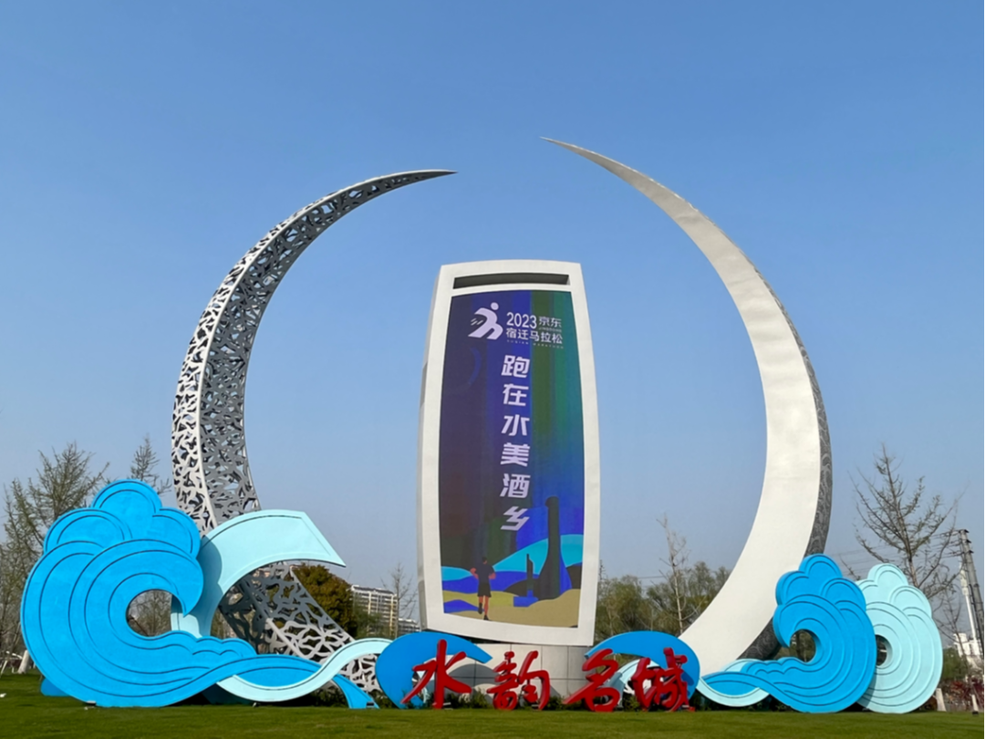 在赛道沿途公交站台、LED大屏等处布置主题公益广告画面100余幅,引导广大市民积极参与,展现酒都宿迁独特魅力。