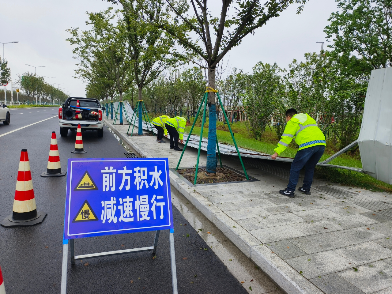 打好防汛“组合拳”。宿迁交建迅速成立应急抢险抢通小组,严格执行24小时值班制和领导带班制度,加强突发情况、突发事件信息采集、报送工作。工作人员深入一线加大对道路边沟、桥梁桥下空间、排水系统、泵房设施等巡查力度,确保各路段排水设施和应急供电设施正常运行。同时对桥梁涵洞、路面低洼、地下通道等重点部位的安全警示标志、标牌、夜间信号指示灯进行摆放加固。