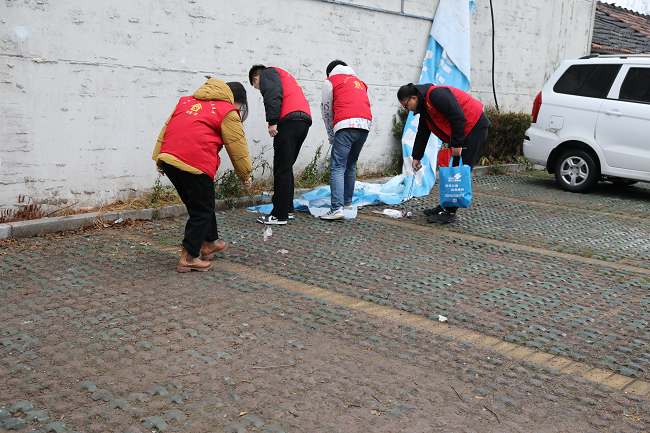 9时50分,志愿者们迅速穿上志愿者马甲,领取劳动工具。带队人将志愿者们分成二组,在不同区域打扫卫生,本次打扫的重点是社区楼道与路面。虽然过程很冷、很辛苦,但志愿者们依然坚持,经过志愿者们的清扫,果园社区的整体面貌焕然一新。他们用行动和微笑诠释了“爱护环境,人人有责”的活动意义,得到了果园社区群众的充分肯定。