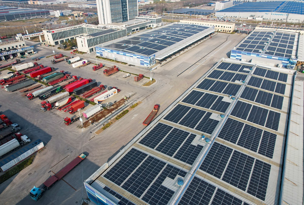 江苏通湖物流园有限公司利用仓储中心、分拣中心、城市配送中心等7栋建筑物屋顶建设分布式光伏电站,总容量为5.99MW,消纳方式为“自发自用、余电上网”,年发电量超600万kWh,基本保障园区用电需求,有效实现园区绿色能源供给。同时,公司有序推进加油(充电)站建设,施工整体进度达65%,建成后将配置10余台加油机、充电桩,极大地满足园区及周边企业、居民的生产生活需求,为园区高质量发展注入新的动力。