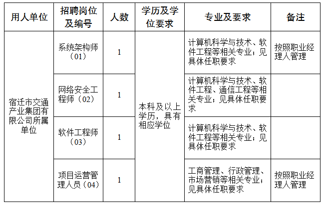 (一)招聘岗位01:系统架构师1名(岗位按照职业经理人管理)